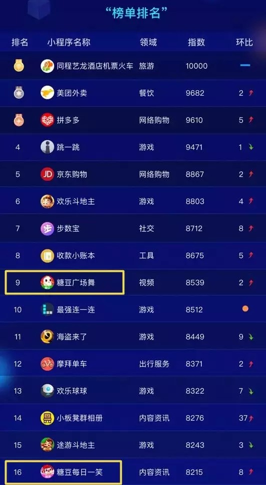在小程序数据平台阿拉丁10月底发布的榜单中,北京小糖科技有限责任公司旗下针对中老年用户的三款小程序“糖豆广场舞”、“糖豆爱生活”和“糖豆每日一笑”同时跻身Top 20,在一众“巨头”和“嫡系”小程序中尤为显眼。这向小程序创业者们提供了一个思路:下沉用户和老年人群体是小程序创业者苦苦寻求的流量富矿。