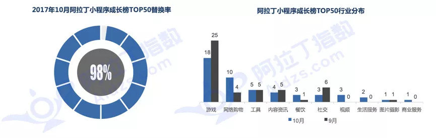 在阿拉丁公布的10月小程序成长榜中,替换率98%,但游戏占比继续下降。小游戏创业者大潮正在回落。最先入场的人,也是最早离场的。而大中型的企业团队则郑重切入这一赛道。猎豹日前发布Q3财报,总收入13.52亿元同比增长15.6%,财报特别提出手游业务收入达2.85亿元,同比增长77.8%,创历史新高。此前推出的小游戏《钢琴块2》、《滚动的天空》、《跳舞的线》在Q3有更好的表现。与此相对应的,微信官方开始力推原创小游戏,给予更高的分成和商业化探索空间。行业正在走向更规范、更健康的秩序,但能否掀起第二次高潮还要看游戏行业政策何时回暖。