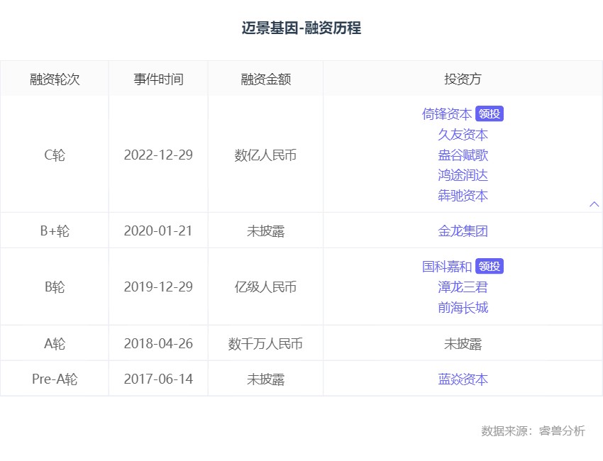 近日,广州迈景基因医学科技有限公司(后称“迈景基因”)宣布完成数亿元C轮融资。本轮融资由倚峰资本领投,盎谷赋歌、久友资本、犇驰资本、鸿途润达跟投。所募集的资金将用于研发投入与IVD产品注册。