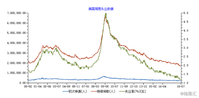 失业率创下10年新低。数据显示,截至2018年5月26日当周,美国首次申请失业救济人数已跌至22.1万人,失业率下滑至3.8%,创18年来新低,显著优于市场预期。市场机构普遍认为,目前美国已进入充分就业状态,今年上半年劳动力市场将进一步延续向好态势。