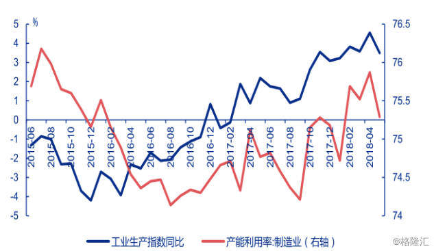 据路透社消息称,2018年来,受特朗普减税政策扶持美国制造业发展强劲,工业生产指数和产能利用率虽有小幅波动,但整体呈上升趋势。