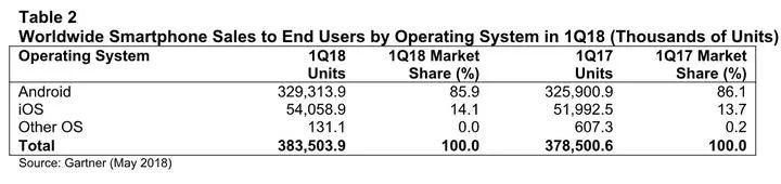 ▲2018第一季度,数据来自 Gartner (权威调研机构高德纳)