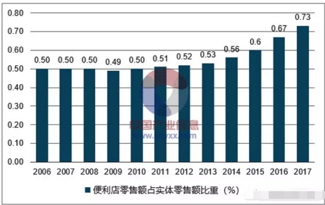 小谦注意到,2017年便利店增速达到12%,连续第八年保持两位数左右的水平。便利店占实体零售额的比重也逐年上升,由2006年的0.5%上升至2017年的0.73%。由此可见,便利店经济反而是实体经济中稳稳前进的黑马。