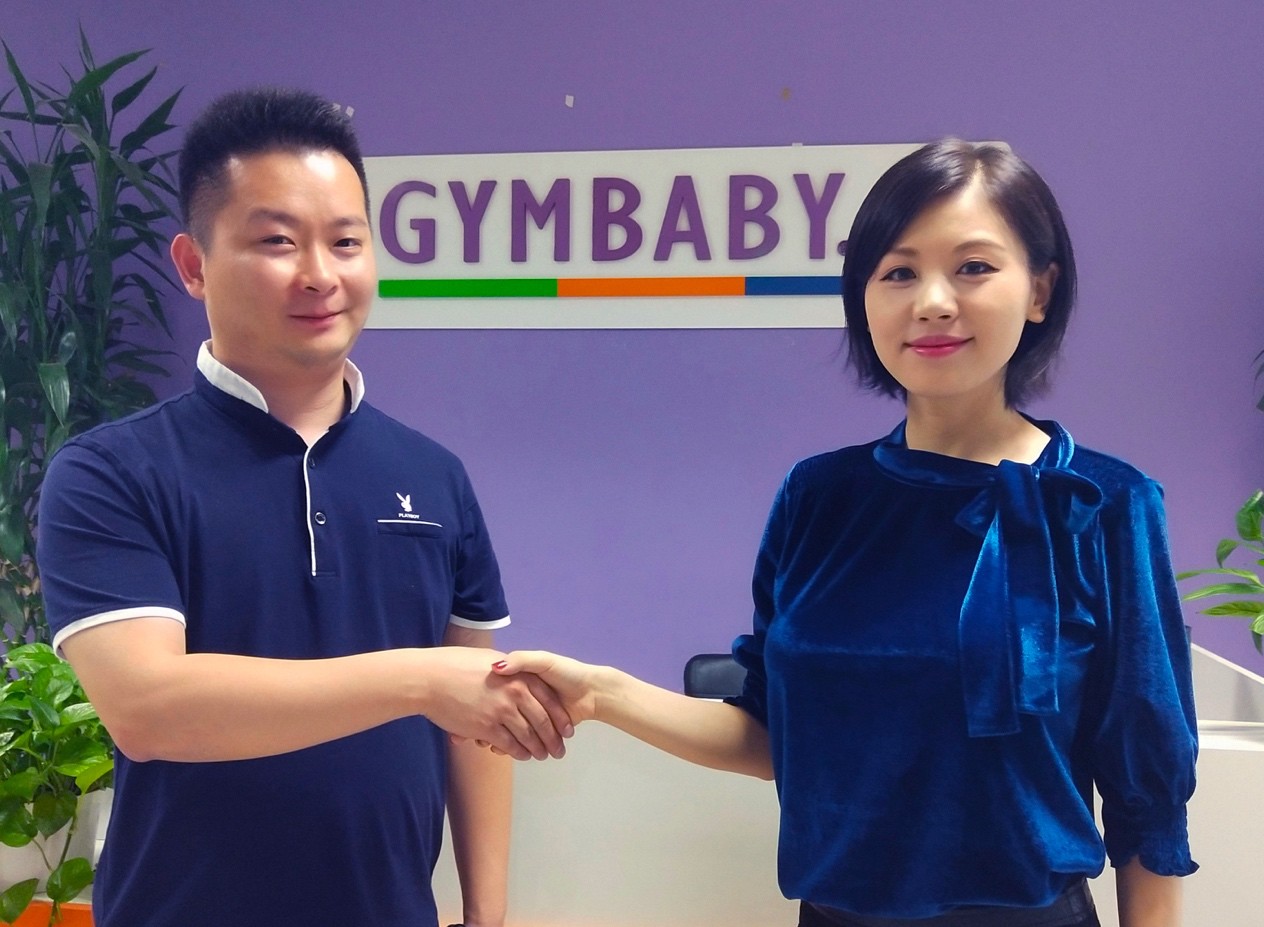 运动宝贝与蒙迪教育完成战略合作仪式(右:运动宝贝教育集团总裁CELINE,左:蒙迪教育CEO许培鑫)