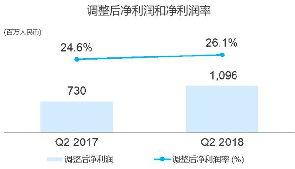 第二季度调整后净利润为10.96亿元,同比去年同期7.3亿元,增长50.0%。