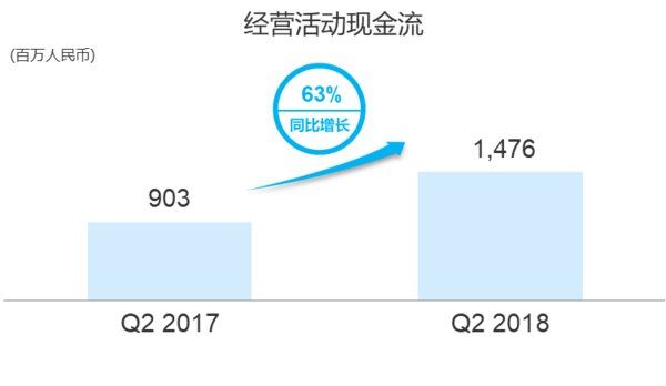 第二季度来自经营活动的净现金流为14.76亿元,对比去年同期9.03亿元增长了63.4%。