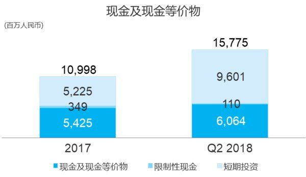 截至2018年6月30日,中通持有的现金及现金等价物、限制性现金以及短期投资总额为157.75亿元。