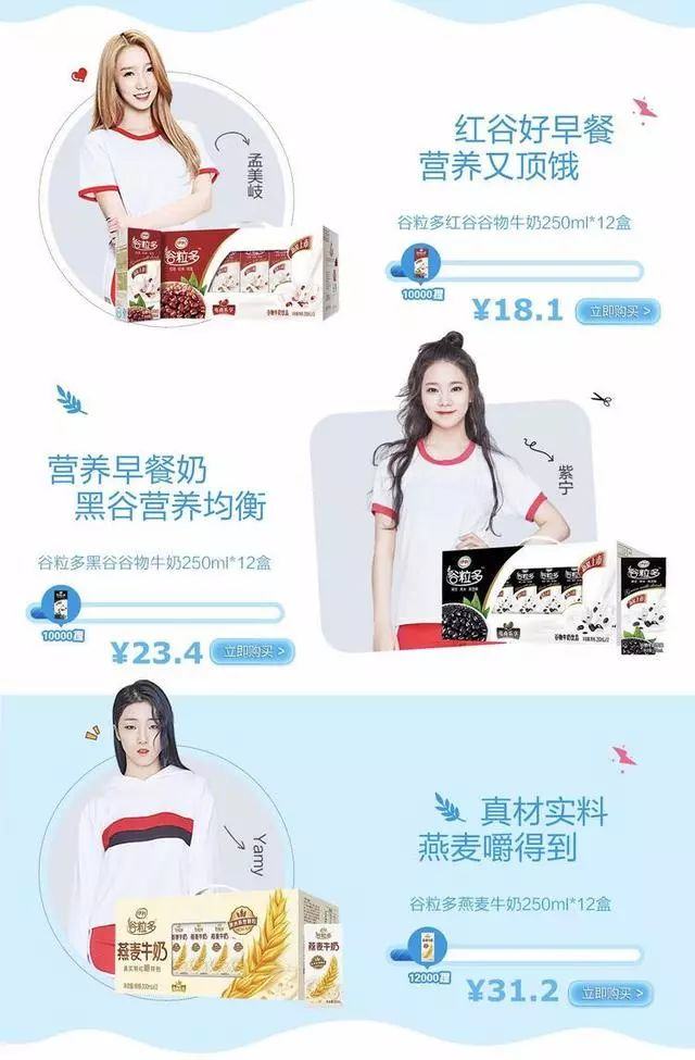 以孟美岐为例,目标为 30 万提的孟美岐粉丝需要购买总额543万的谷粒多红谷谷物牛奶,才能帮助她成为谷粒多代言人。很多粉丝因此怒斥成团后的经纪公司“想钱想疯了”、“吃相太难看”,对这种刺激粉丝消费的方式并不买账。