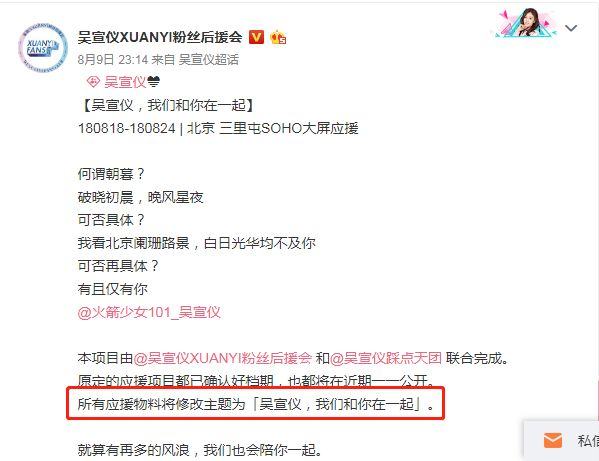 吴宣仪粉丝粗略估计价值超过十万元的应援项目临时更改了主题