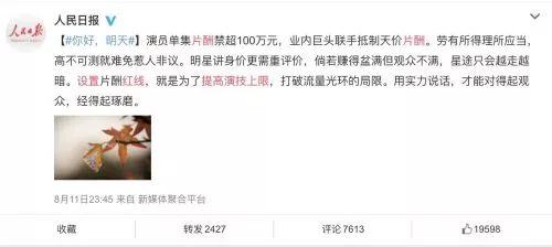 人民日报:设置片酬红线就是为了提高演技上限