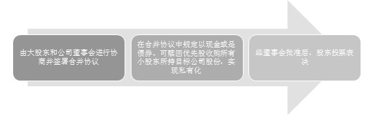 长式合并指由大股东直接与目标公司合并,或由大股东设立一个全资子公司与目标公司进行合并,从而实现退市。