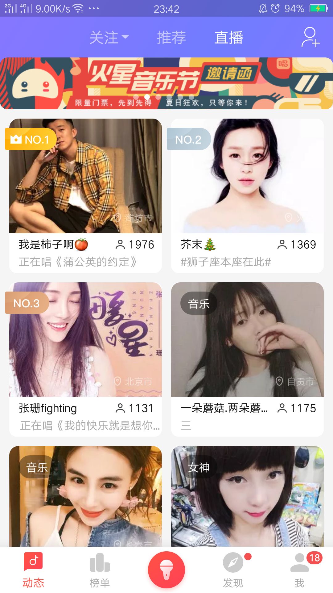 唱吧直播界面截图,陈华对创业邦表示,直播已经成为唱吧的核心业务之一,并且贡献着可观的收入