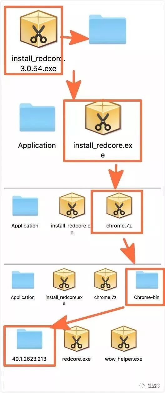 而用户及媒体感到愤怒与被“欺骗”的地方在于,在解压该浏览器压缩包是,最终会显示一个Chrome文件,这与红芯所宣传的自主创新内核Redcore不相符。