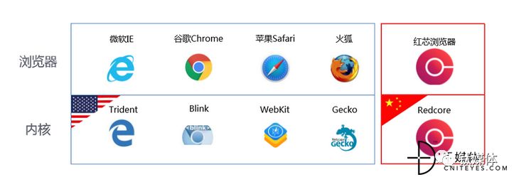 但在红芯的露出的图片中,则暗指红芯Redcore可以与上述四大浏览器内核并列。