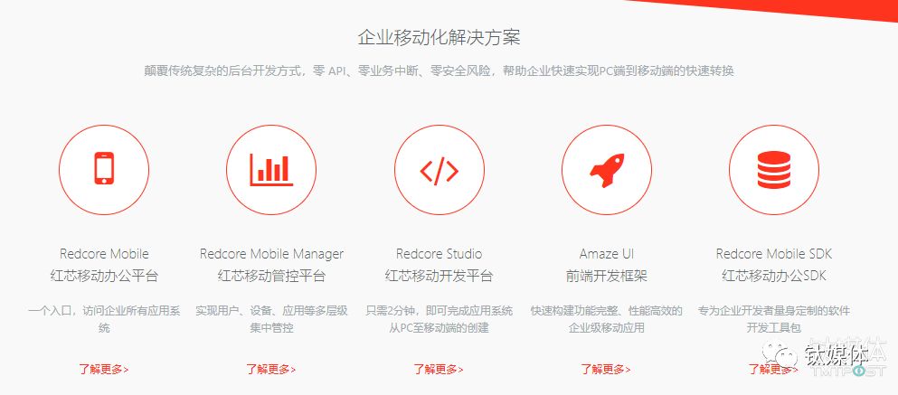 在官网上,红芯云适配的定位是全球突出的移动化解决方案供应商,为企业移动化高效开发提供完整一套解决方案。产品包括红芯移动办公平台、红芯移动管控平台、红芯移动开发平台、前端开发框架和红芯移动办公SDK红芯隐身防御系统是一个基于浏览器的安全访问方案。基于“云适配”和防御系统产品基础上,红芯推出了浏览器产品,卖点是“安全”、”企业级”。