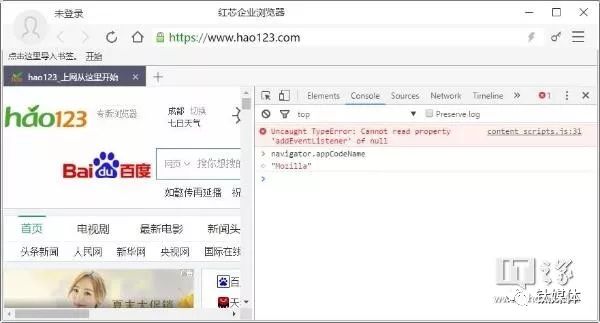 该作者称,他打开浏览器按照查看谷歌浏览器内核的方式随便开了一个网页之后打开开发者工具,在console下输入navigator.appCodeName回车后返回的信息居然有国外浏览器的产品代号:Mozilla。