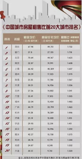中国一线城市的租售比,普遍在 1 比 500 左右,有的城市甚至高达 1 比 700。这意味着出租一套商品房至少要过 40 年才能收回成本。
