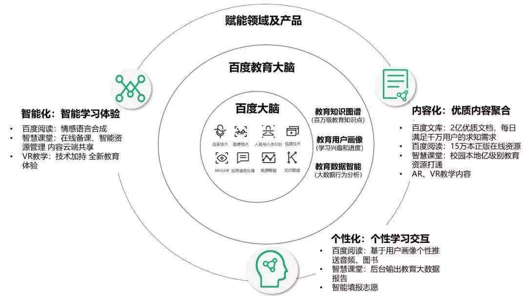 另外,因为受限于数据量、学生的情绪识别、学习状态识别等技术问题,目前许多AI教育产品离真正的“千人千面”依然还有一段距离。但正因为市场上充斥着的“伪AI教育”才让一些已经突破技术瓶颈的“真AI教育产品”快速超车。例如由人工智能、大数据和云平台所组成的百度教育,通过整合自身优势资源开发出串联了1千多万细颗粒度知识点的教育知识图谱以及AR知识点解析等等,真正突破了限制实现“千人千面”的瓶颈。