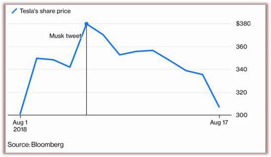 再后来的事情我们都知道了。 8月7日,马斯克在未与董事会沟通的情况下发布推文称,考虑以每股420美元的价格对特斯拉进行私有化,该收购价格比特斯拉现有股价高出约18%,特斯拉股价应声上涨。随后,人们发现马斯克似乎夸大了其获得资金的可能性,而美国证监会(SEC)也开始介入调查(不过,据悉SEC早就盯上了特斯拉),特斯拉股价又随之下跌。就在这十多天的时间里,特斯拉股价累计下跌约19%。