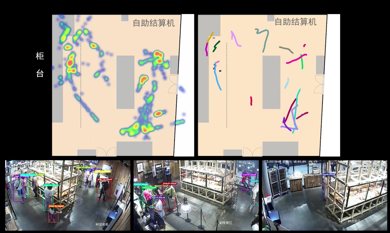 人流动线追踪则是结合零售行业的真实场景,实现了卖场的人流动线追踪,顾客识别,顾客行为定位等未来“无人值守零售店”的几乎所有核心技术。