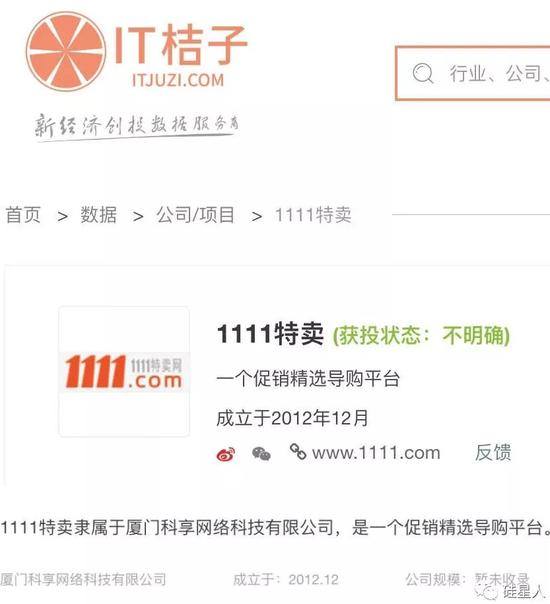 叶志平的身份标注为厦门科享。根据创业公司数据库 IT桔子,这个公司本来是做电商促销的导购网站 1111特卖网。