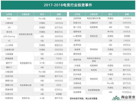 市场的快速增长,资本的不断涌入,直接促使了电竞从业者收入的水涨船高。据青山资本(ID cyanhillvc)不完全统计,2017年至今有36家电竞类公司获得融资,涉及电竞赛事运营、主播经纪、直播平台、电竞社交、电竞俱乐部等多个产业。