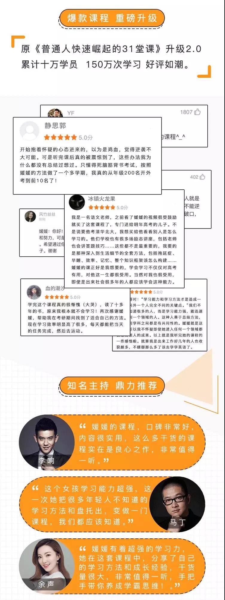区别于让你死记硬背、盲目坚持的鸡汤,这套课程的核心是有效的进阶方法,覆盖定位、学习、自我管理、社交等内容,系统教你如何用正确的姿势努力。