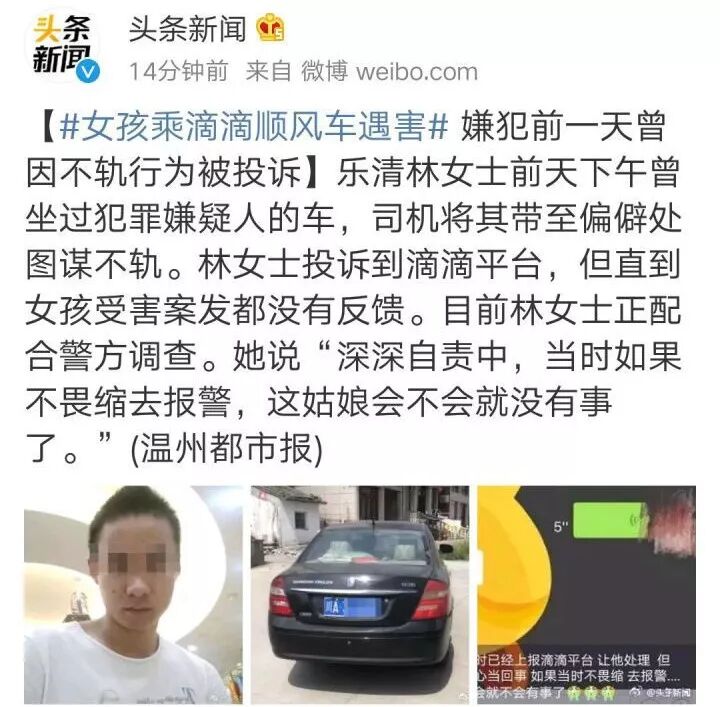 今年5月,一名21岁的空姐被滴滴顺风车司机杀害。