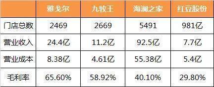 我们来看下海澜之家的核心数据:全国门店:5491家。营业收入:92.5亿。毛利润40.1%。顺便看下:雅戈尔/九牧王/红豆股份这几家的数据。