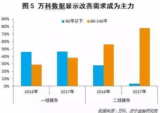 来看一组更扎心的数据:由万科提供。二线城市改善型换房大面积需求呈压倒性比例,尤其是2017年。这一轮资产膨胀后,中产的分水岭已经出现。