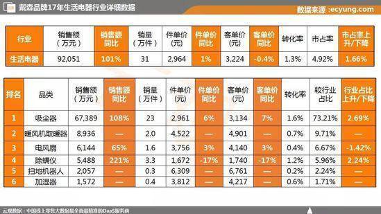2017年戴森在天猫卖出了23万台吸尘器,2万台取暖机。