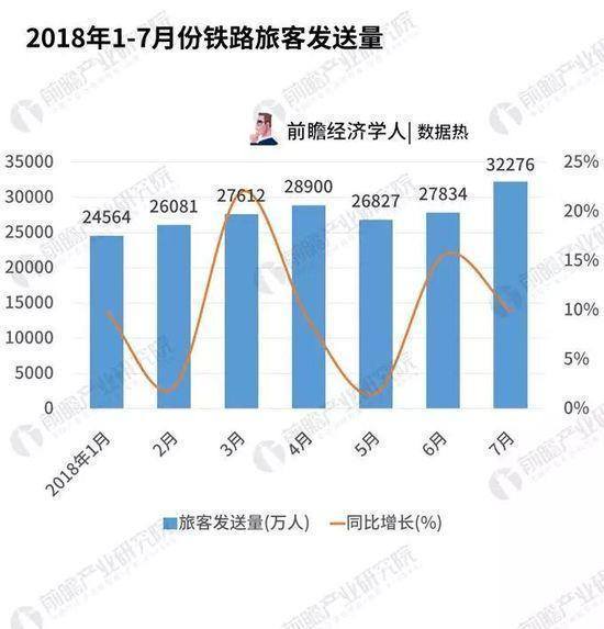 下图是2018年1-7月中国的铁路运量。七月单月突破3亿人次。2018年上半年中国民航业的总运输量是2.96亿人次。该数据波波已经在中国民航总局官网核对过,准确无误。