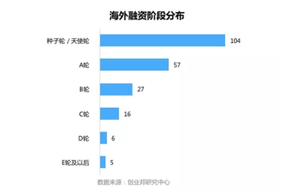 本周国外融资事件的融资轮次主要集中在种子轮/天使轮、A轮及B轮,其中种子轮/天使轮融资事件最多104起;A轮次之,57起;B轮融资事件数量第三,27起。