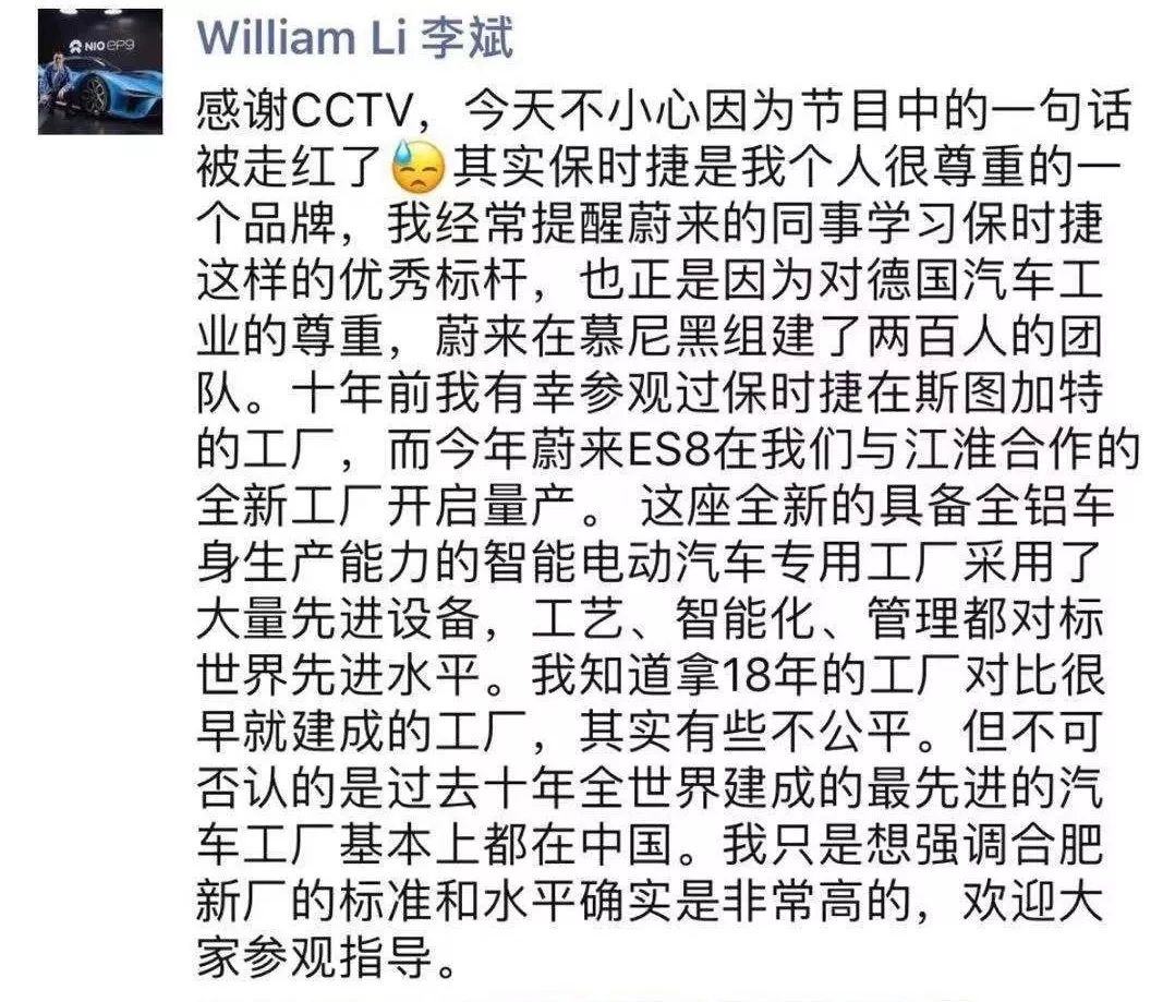 近日,蔚来汽车创始人李斌一段视频讲话火了:“保时捷的工厂,肯定不如江淮的工厂(蔚来现由江淮代工),你们不要觉得我胡说八道,因为我参观过。”