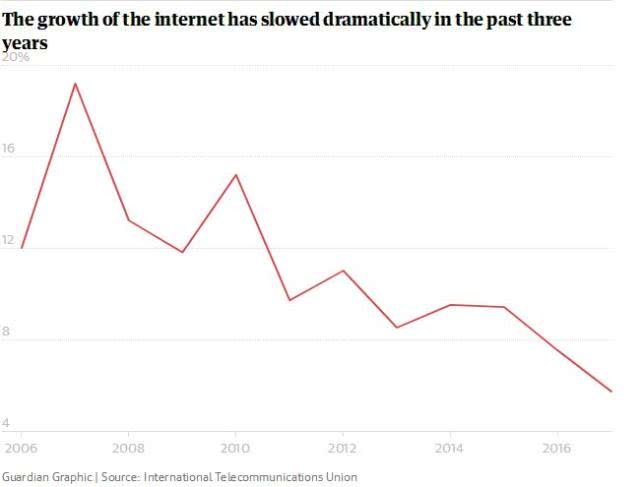 在发展中国家,固网连接非常昂贵,所以大多数人通过手机连网。这种趋势导致互联网的两层体验被增长的数据所掩盖,毕竟在手机上能做的事情只是台式机、笔记本电脑或平板电脑功能的一小部分,任何试图在手机上提交报税表的人都知道这一点。
