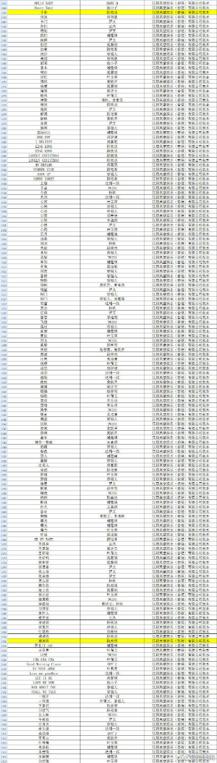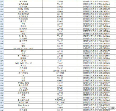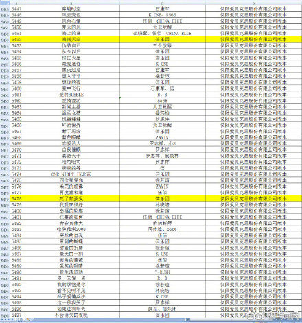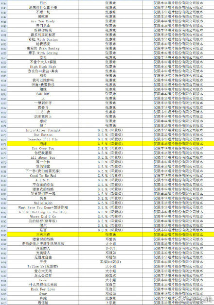 在登录中国音集协之后,邦哥也是下载了这份最全被下架歌单后发现,6609首歌曲几乎都是KTV的热门曲目,包括《最近比较烦》、《春天里》、《我爱你中国》、《追梦赤子心》、《夜空中最亮的心》、《小苹果》、《算你狠》等。所牵涉的艺人有那英、陈奕迅、叶倩文、twins、邓紫棋、张惠妹、任贤齐等。