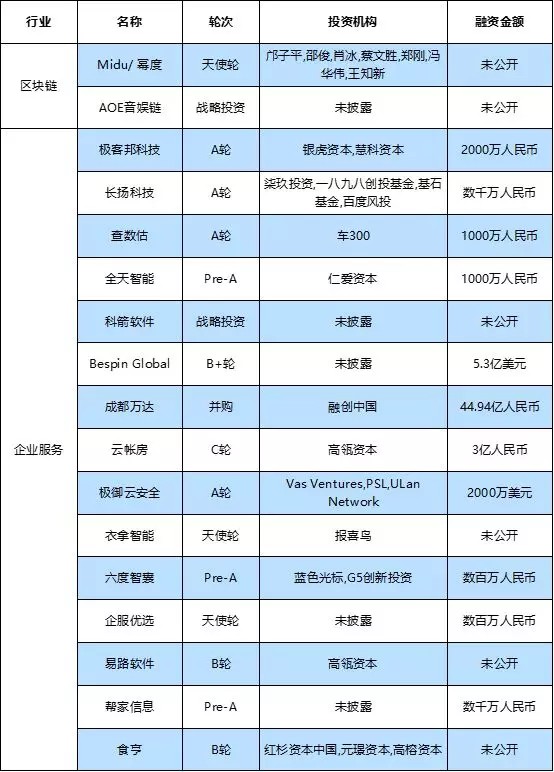 附表:本周国内融资事件汇总