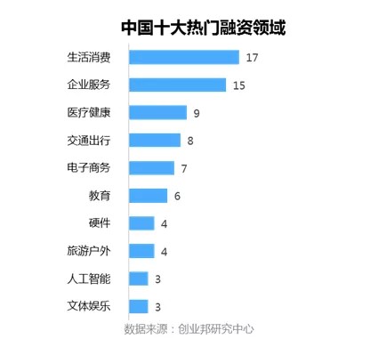 本周披露融资事件涉及22个行业领域,其中融资案例数最多的五大行业分别是:生活消费17起,企业服务15起,医疗健康9起,交通出行8起、电子商务7起。