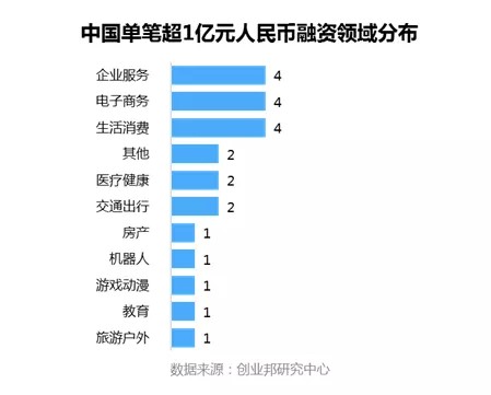 本周融资事件中,单笔融资额过亿的案例主要集中在企业服务、电子商务、生活消费领域。