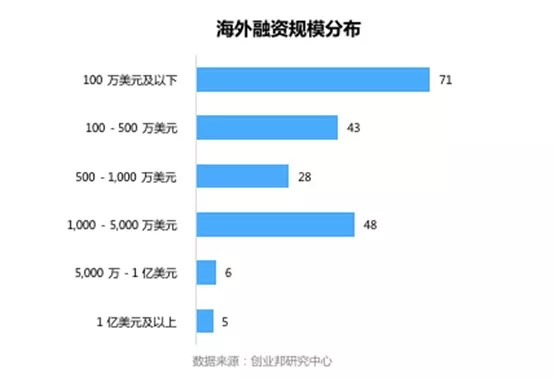 本周国外融资事件的融资规模主要集中在100万美元及以下,共71起。融资额达1亿美元以上的案例有5起。