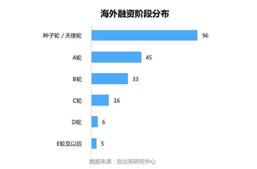 本周国外融资事件的融资轮次主要集中在种子轮/天使轮、A轮及B轮,其中种子轮/天使轮融资事件最多96起;A轮次之,45起;B轮融资事件数量第三,33起。