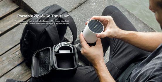 为了方便用户外出旅游时携带,MagDock还配备了一个收纳盒,用户可以将充电器和充电线缆放在这个盒子里。