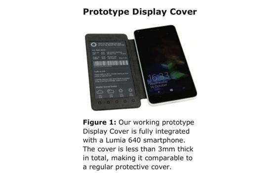 但是微软的研究人员想出了一个新的方法,他们在手机的保护壳上添加了一块电子墨水屏,这意味着用户可以同时看到两个屏幕。