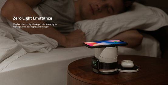 MagDock就是一款类似AirPower的设备,它同样能给iPhone、Apple Watch和AirPods同时进行充电,而且它还拥有AirPower不具备的功能:充当移动充电宝,以及对设备进行有线充电。