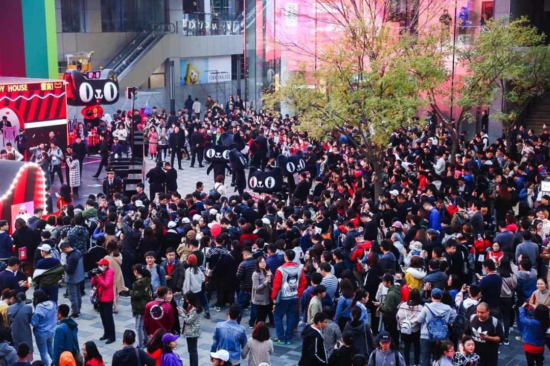 11月3日下午,全国第一轮天猫双11新零售商圈红包雨降落三里屯太古里南区中庭,男女老少纷纷举起手机扫码“接雨”,现场信号几乎陷入瘫痪