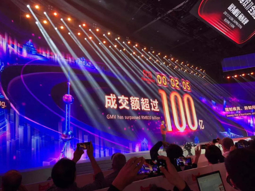 11月11日00:00一敲响,全国各地乃至世界各地的“剁手党”们真正的狂欢正式开始,晚会现场长45米,高6米的高清大屏上,今年双11的数字又有大突破!2分05秒时,交易额冲到100亿!比去年的3分01秒快了近1分钟!