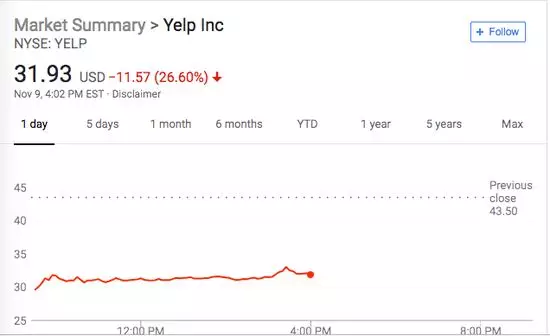 美版“大众点评”Yelp遭广告商抛弃,股价盘中跌超32%