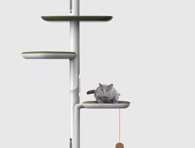 设计师Hyojeong Lee设计了一款智能的猫爬架,结合了不起眼的猫塔和真空吸毛器,其设计灵感源自树叶突出的叶子的自然动作。 一系列梳子从中央支柱突出,猫可以揉搓,房主然后按下按钮,定位在有趣的猫玩具上,启动真空吸毛器,松散的毛皮收集在底座中,彩色垫子还可以满足不同的喜好。