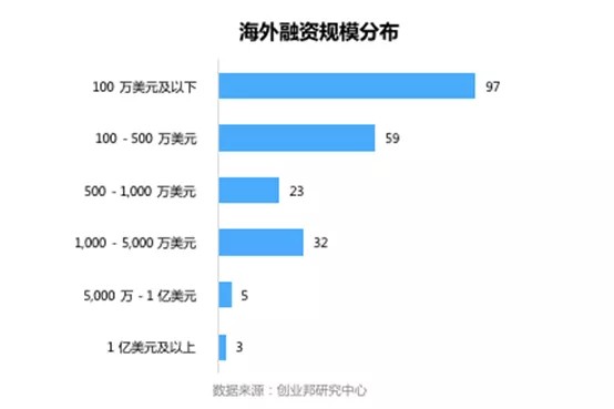 本周国外融资事件的融资规模主要集中在100万美元及以下,共97起。融资额达1亿美元以上的案例有3起。