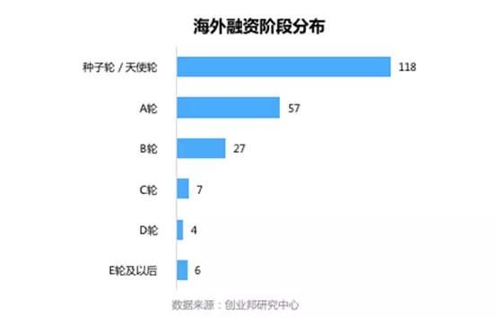 本周国外融资事件的融资轮次主要集中在种子轮/天使轮、A轮及B轮,其中种子轮/天使轮融资事件最多118起;A轮次之,57起;B轮融资事件数量第三,27起。